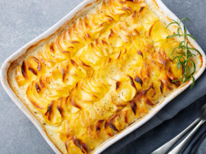 Le gratin dauphinois est un plat traditionnel originaire du Dauphiné, une région historique du sud-est de la France (aujourd'hui intégrée à l'Isère, la Drôme et les Hautes-Alpes). Apparu au XVIIIe siècle, il se compose simplement de pommes de terre, de lait ou de crème et parfois d'ail - sans fromage dans la recette classique. Il était cuisiné dans les fermes dauphinoises, utilisant les ingrédients locaux et de saison. Au fil du temps, le gratin dauphinois est devenu un classique de la cuisine française, apprécié pour sa simplicité et sa gourmandise.